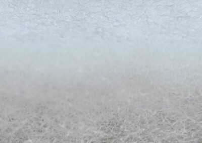 Fibre acriliche legate tramite resina sintetica, struttura labirintica pronunciata, densità crescente verso il lato uscita aria, consente una Filtrazione/accumulo polveri notevole nello spessore del setto filtrante.